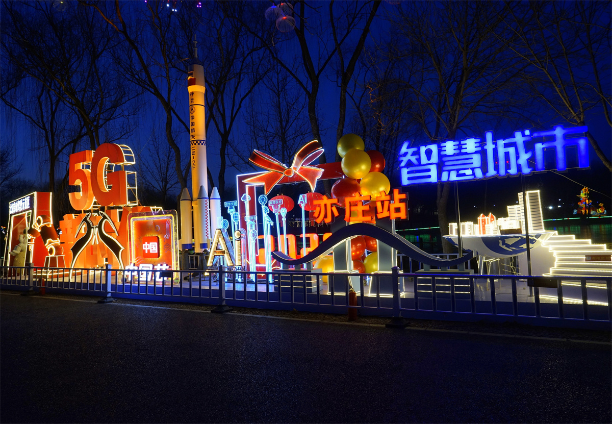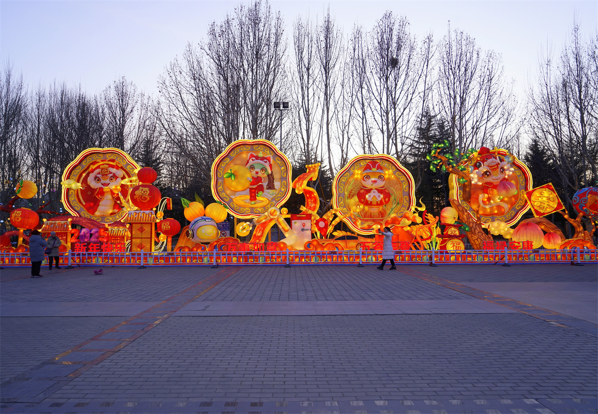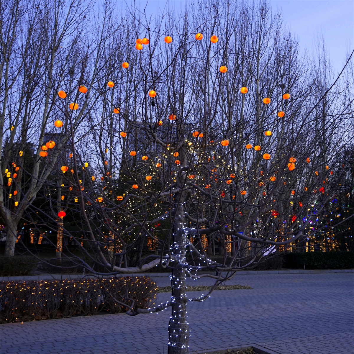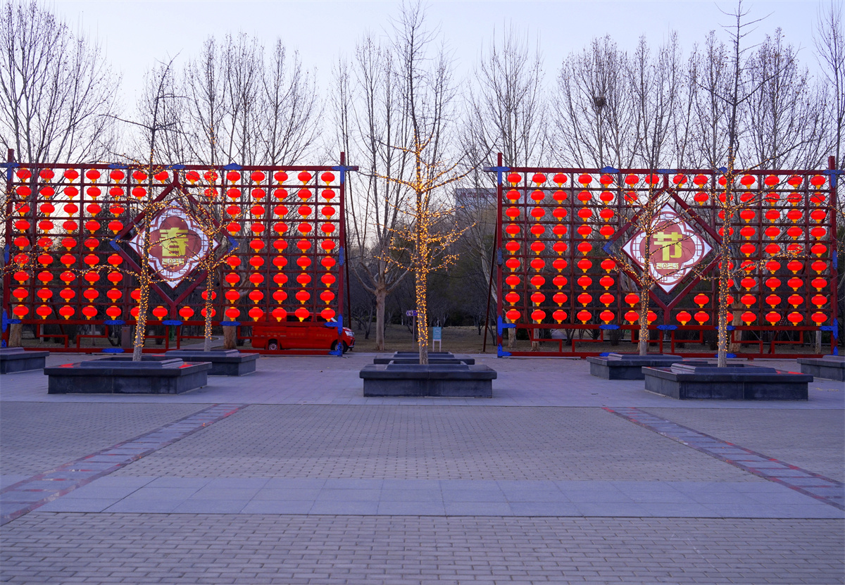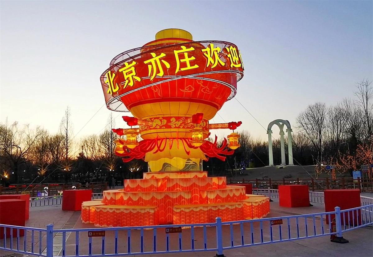 随后沿着公园步谈向西南行进,寓意万事如意的柿子花灯、多样宫灯缀满枝端。一组写有“亦庄接待你”的花灯抒发着主持方珍爱、好客的竭诚情谊……。