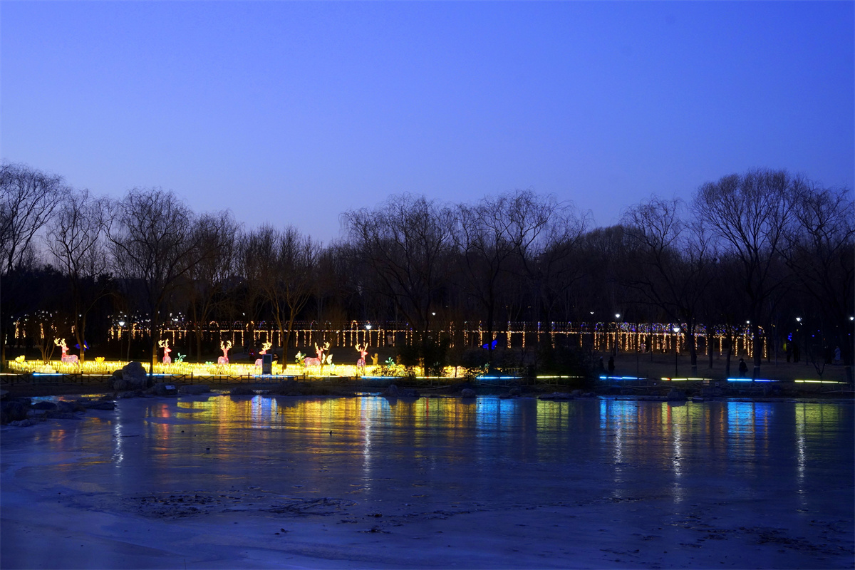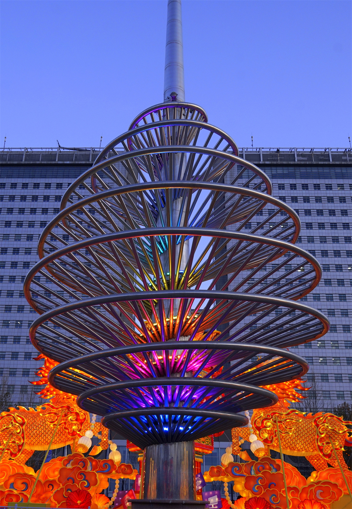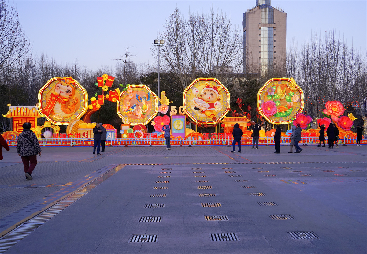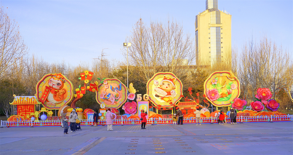 这座被高大写字楼包围的公园并不大,但是布局很细巧。赏花灯提议从南1门走起,这里4组阵容恢宏的花灯带给东谈主们激烈的节日氛围,红火又吵杂。 “十年树木”雕镂也辐射着灿艳的光芒。