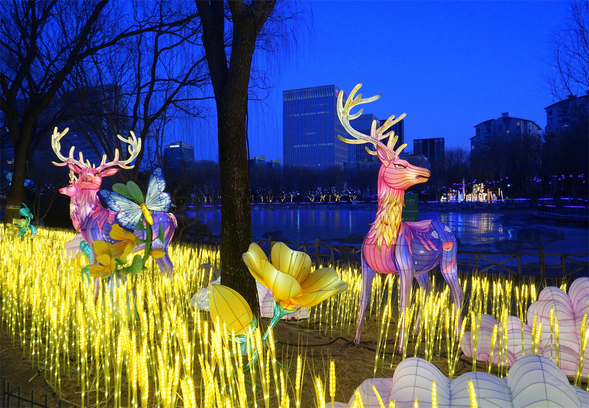 荷花洞开,荷塘中引领大喊的水禽,“亦庄之门”的画面,是园中灯会的保留技俩。而树干上迟缓挑动翅膀的蝴蝶,麦田庐谛视着游东谈主的小鹿是本年花灯的新亮点。