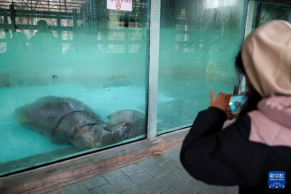 1月21日体育游戏app平台,旅客拍摄在室内泡温泉的河马子母。新华社记者 王翔 摄