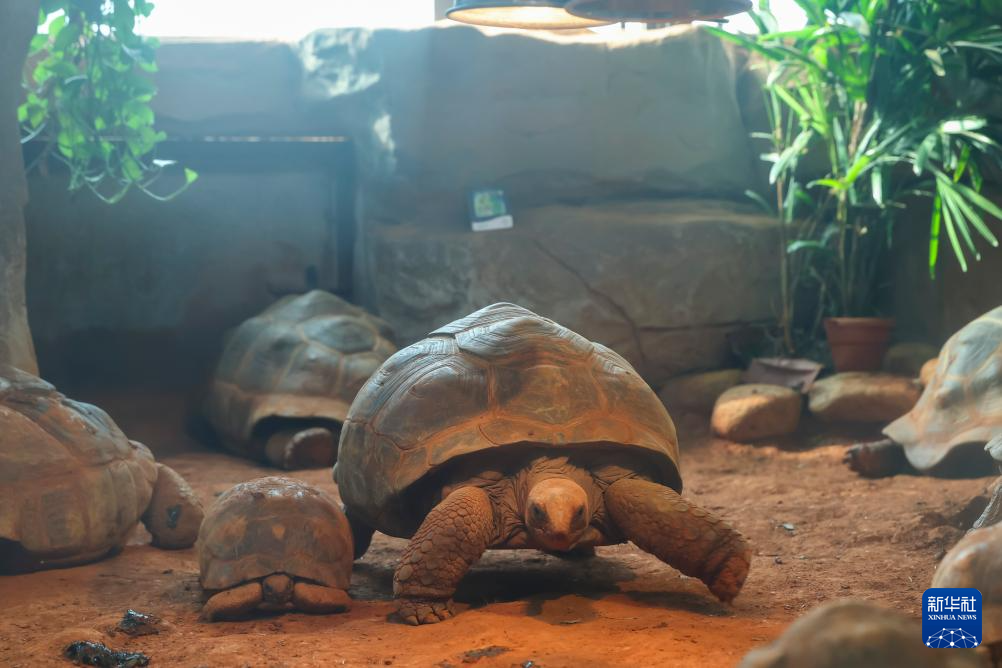 1月21日,亚达伯拉象龟在温室内爬行。新华社记者 王翔 摄