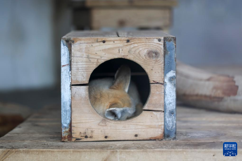 1月21日,耳廓狐在责任主说念主员打造的小板屋内休憩。新华社记者 王翔 摄