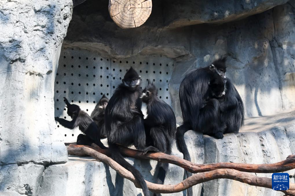 1月21日,黑叶猴在室内空调出风口取暖。新华社记者 王翔 摄