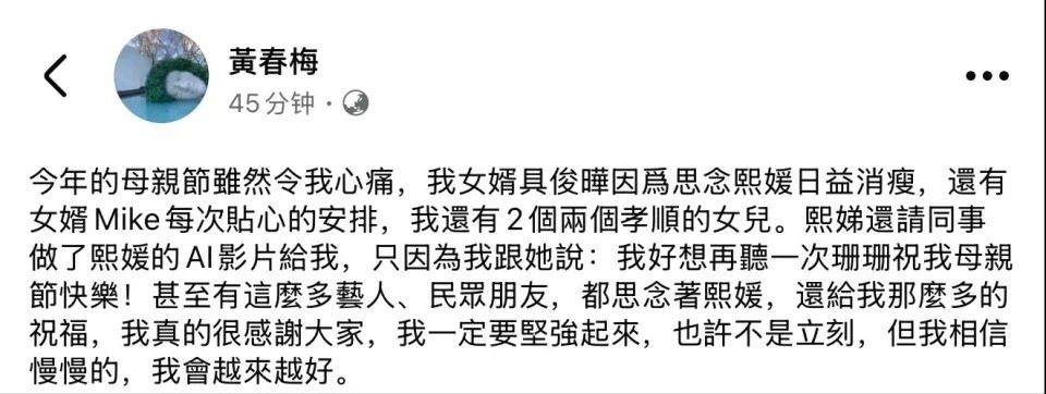汪徐两家在母亲节杠上了,一边是小S号令文娱圈明星给大S吊唁缓解母亲痛苦,一边是汪小菲晒出犬子诞辰照和母亲节的相片,合手马经过令东谈主战抖。