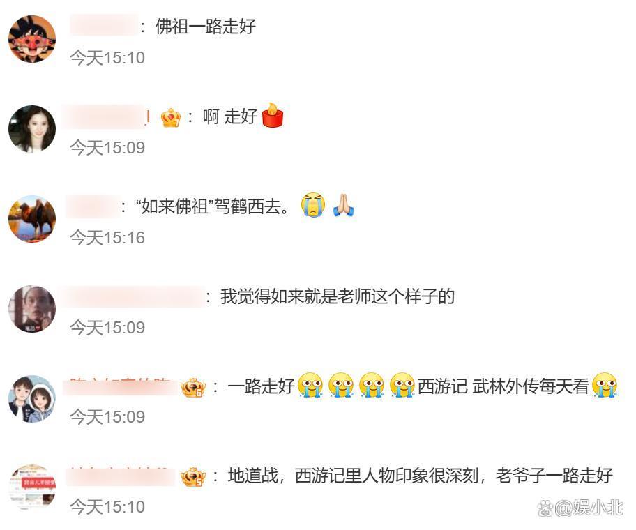 不少网友也在关系媒体报说念的驳斥区抒发了我方的哀想,纷繁驳斥“我以为如来即是敦厚这个面目的”、“老东说念主家一齐走好”、“如来佛祖驾鹤西去”......