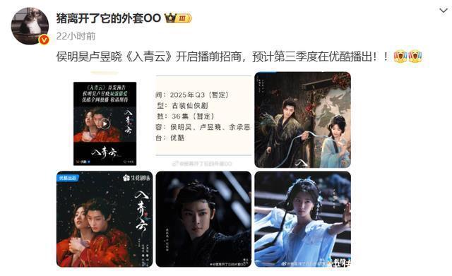 她的古装待播作品天然唯有和侯明昊相助的《入青云》,但网友关于这部作品的期待值少许王人不低。现在这部作品如故参加招商阶段,网传的播出时分为第三季度。 说真话,这部作品不管什么时间播王人不缺热度,毕竟卢昱晓在剧中的造型确切很灵气。