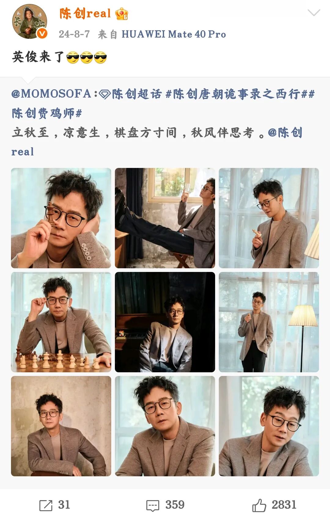 但这还不算啥,之前中秋节的时辰,陈创发了一组像片,那才叫惊艳。