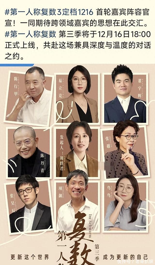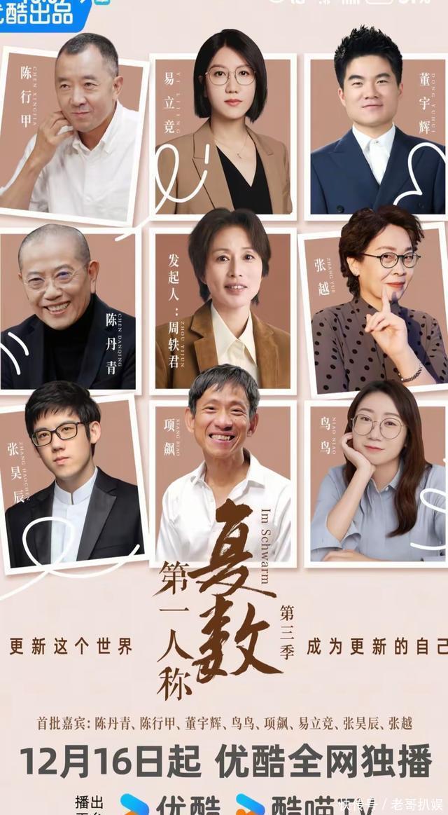 12月10日,就在董宇辉今日晚上行将开启“双12大促”行径上播时,有一件对于他的惊喜音信被其它平台曝光了出来。那即是宇辉将会插足一档由优酷平台的综艺《第一东谈主称复数》第三季,况且在这个官宣海报上还放出了首播手艺是12月16日18点的同期,还官宣了这档综艺的一齐10位嘉宾,这10位嘉宾可皆是各个行业的名东谈主大咖,而且还有两位是宇辉的老一又友。