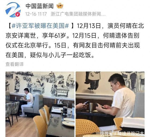 致使有媒体据此报谈“许亚军低调现身前妻葬礼”,赞誉其“多情有义”,但很快注重的网友通过对比发现,这位须眉眉眼更似演员廖京生。 更让东谈主出东谈主意象的是,就在何晴葬礼刚规定的第二天,就有IP地址夸耀在好意思国的网友发文称,今日中午在洛杉矶一家餐厅偶遇许亚军。