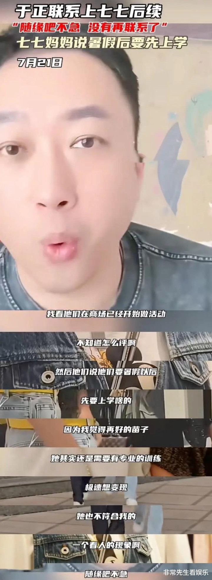 没思到,于正还真听劝,主动联系了七七姆妈,一副伯乐发现了沉马的架势。