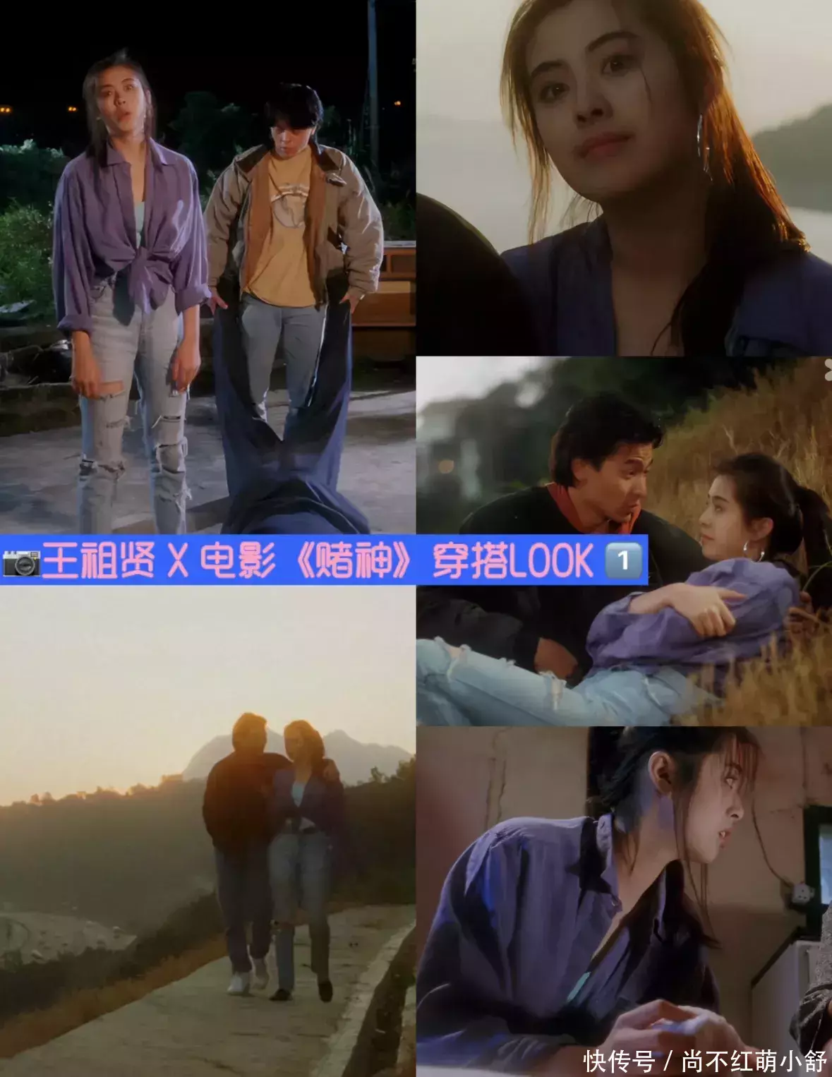 王祖贤在《赌神》剧照中,用蓝色磨破牛仔裤配紫色衬衫,真实惊艳到我了,这穿搭也太前锋了吧。世界认为呢?