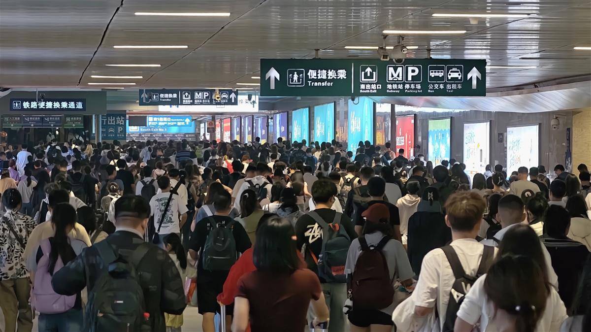 10月6日晚,汉口站迎来国庆返程客流岑岭,站内东说念主头攒动。本年中秋国庆换取的“最长黄金周”时刻,全社会跨区域东说念主员流动量达历史峰值,矫健出行需求彰显经济活力,文旅消耗市集捏续升温。(湖北日报全媒记者 陈少哲 摄)