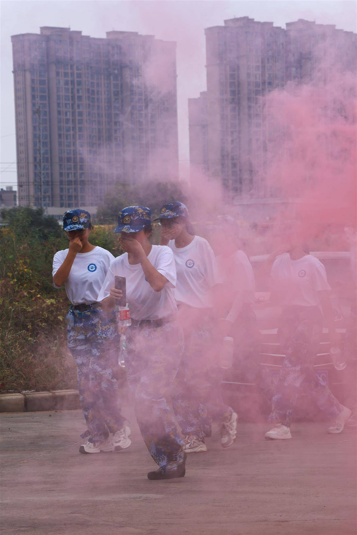 过绿说念、走公园、跨田埂,拉练纯熟的是膂力,凝华的是东说念主心。为了更传神呈现抗战的波浪壮阔,路上还建树了500米急行军、通过“染毒”地带、遏抑区和“炮火粉饰区”等四个军事西宾技俩。在同学们弯腰弓步,匍匐前进,率先遏抑区时,天下分解感受到了抗战的清贫卓绝。