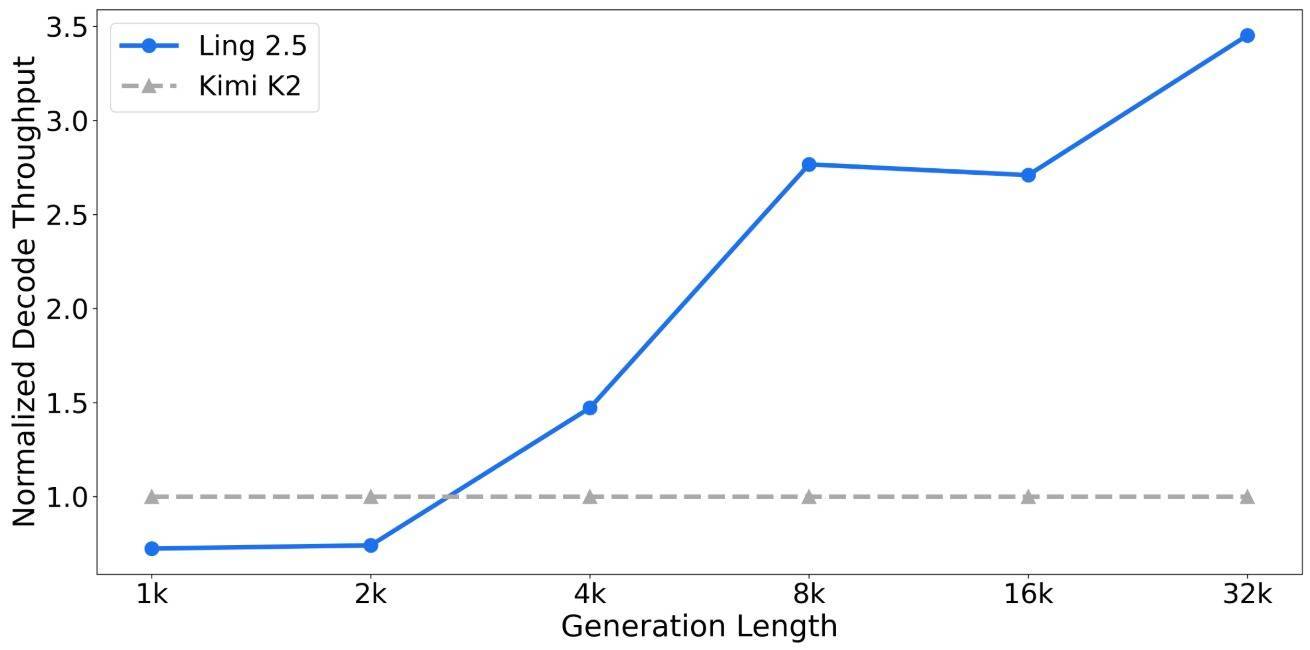 与仅具备32B激活参数的Kimi K2架构比拟,在1T总参数目下,Ling 2.5架构在长序列推理任务中的微辞施展上风权臣,且跟着生成长度增多,成果上风握续扩大。