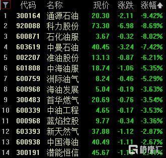 油气设备干事板块下落,通源石油跌超9%,科力股份、石化油服跌超8%,中曼石油跌超7%。