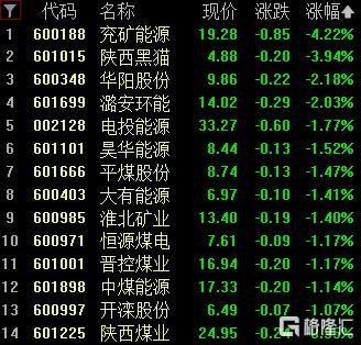 煤炭设备加工板块回落,兖矿能源跌超4%,陕西黑猫跌近4%,华阳股份、潞安环能跌超2%。